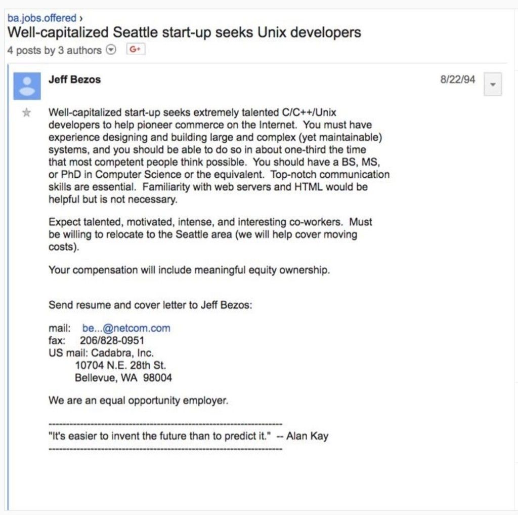 3: Amazon’s first job posting
